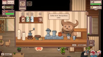 Förutom att servera drycker i Tailside: Cozy Cafe Sim kan du krydda ditt café genom att designa det med hundratals möbler och dekorativa föremål. Spelet har också ett framstegssystem där framsteg genom dagar och nivåhöjningar belönar dig med nya färdigheter och fördelar för att hjälpa ditt café att växa.